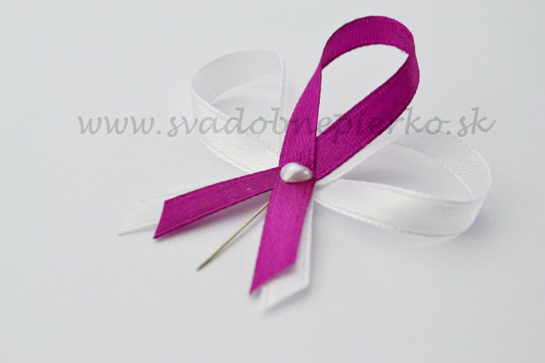 Svadobné pierko tmavo cyklamenovej farby prichytené na špendlíku. Dĺžka 7cm šírka 6cm.