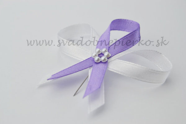 Svadobné pierko fialovej farby, perličkový kvietok v strede. Pierko je  prichytené na špendlíku. Dĺžka 7cm šírka 6cm.