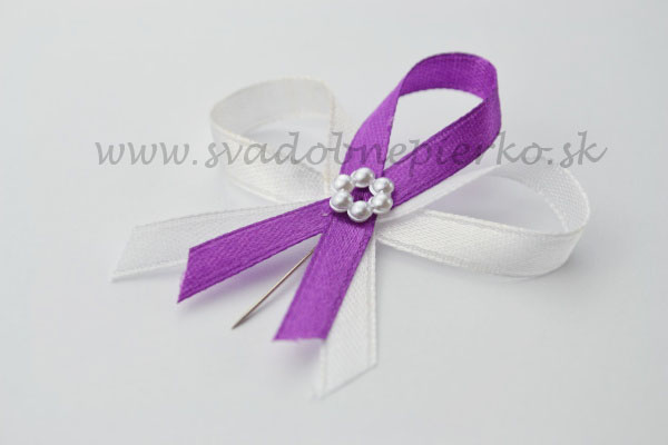 Svadobné pierko svetlopurpurovej farby, perličkový kvietok v strede. Pierko je  prichytené na špendlíku. Dĺžka 7cm šírka 6cm.