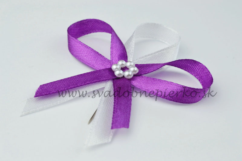 Svadobné pierko svetlopurpurovej farby, perličkový kvietok v strede. Pierko je  prichytené na špendlíku. Dĺžka 7cm šírka 6cm.